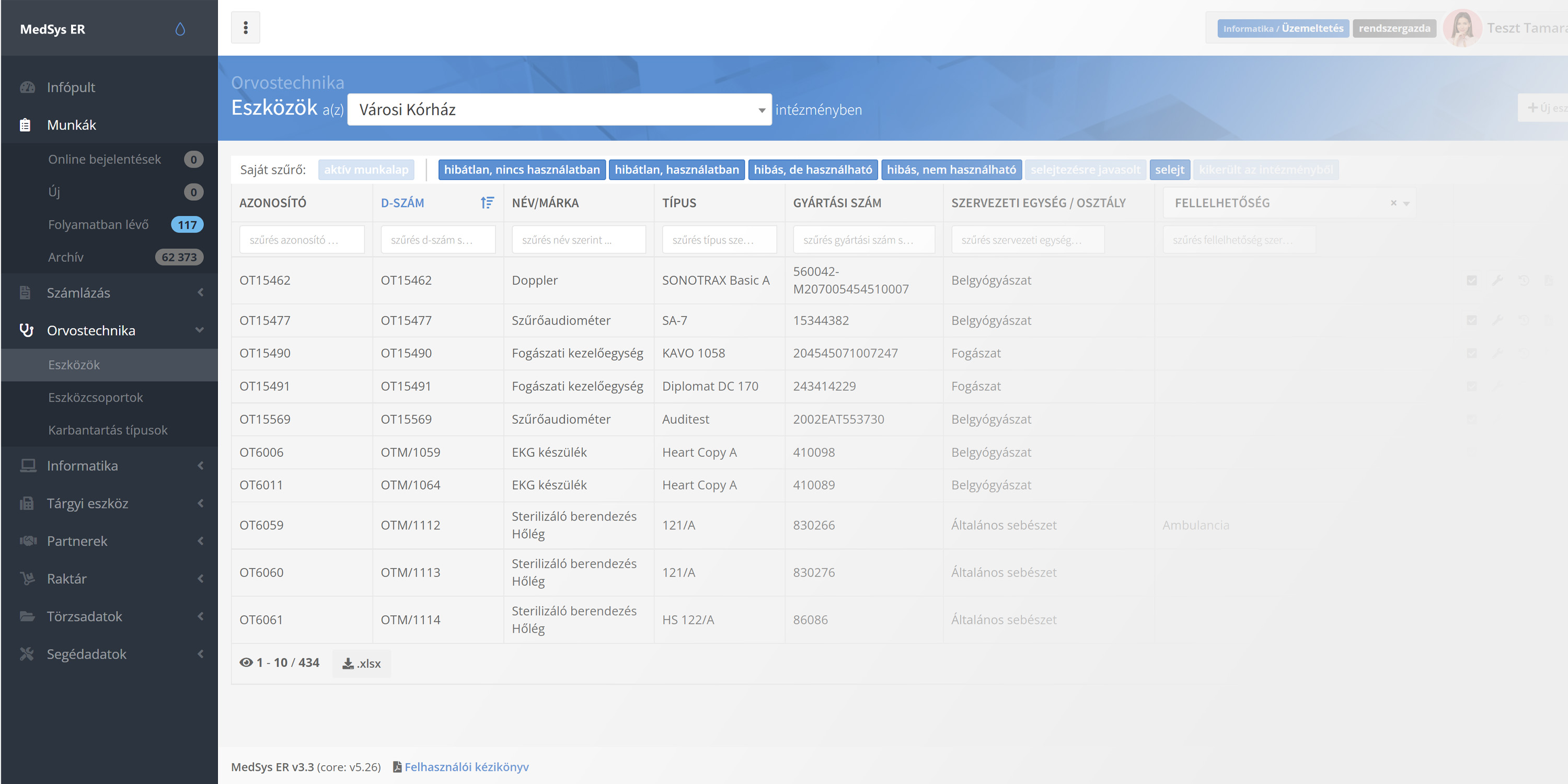 Orvostechnikai, informatikai és egyéb tárgyi eszközök nyilvántartása.